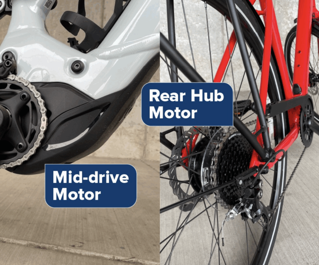 I’ve seen some e-bikes with the motor by the pedals and others with the motor on the rear wheel. What’s the difference?