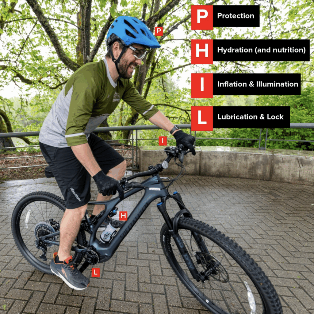 The good news is that an amazing ride doesn’t require a ton of extra gear. At Peak Sports Bike Shop, we like to remember what’s essential by always riding with PHIL.